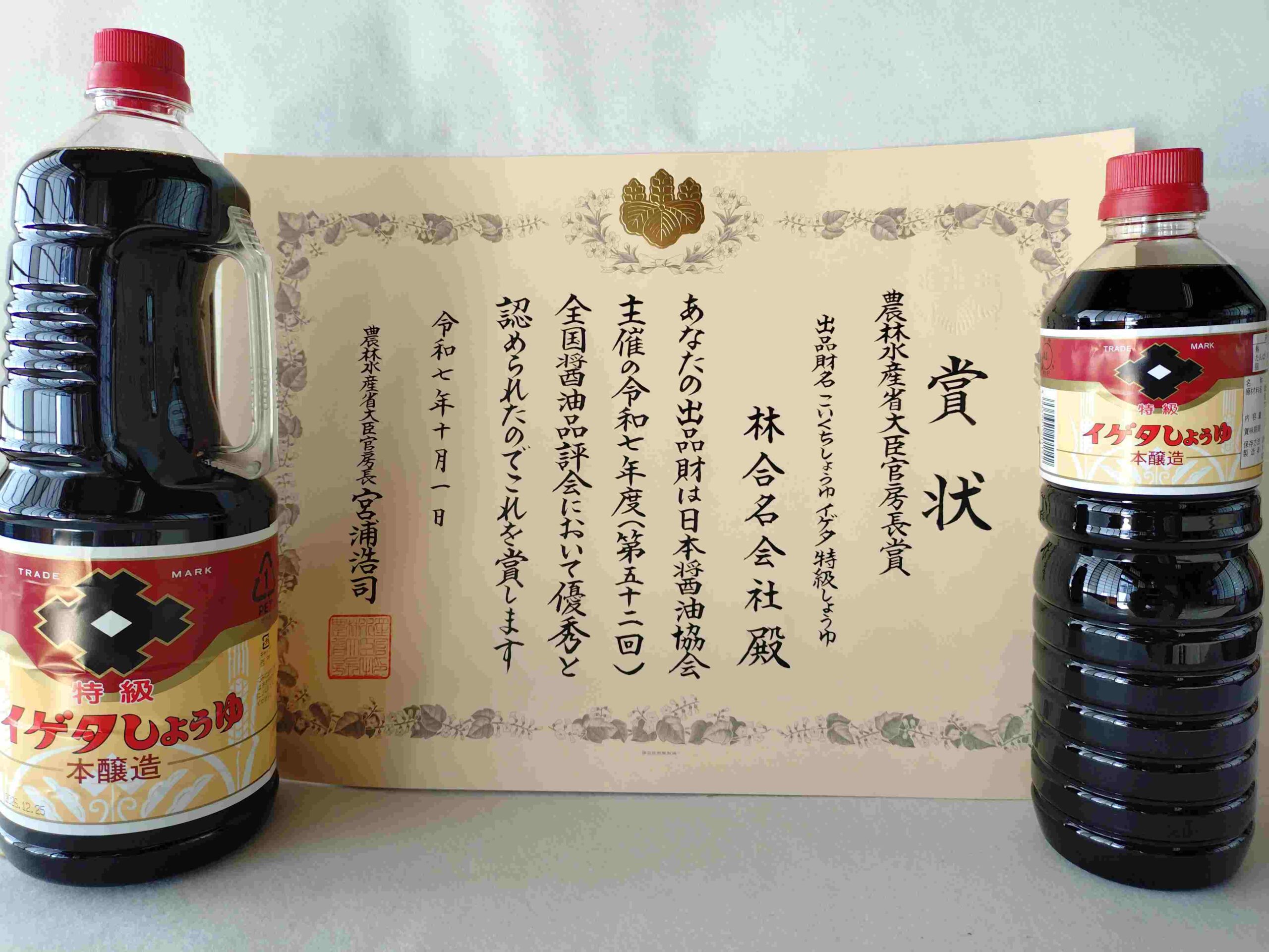 第52回全国醤油品評会にて「農林水産省大臣官房長賞」を拝受いたしました。